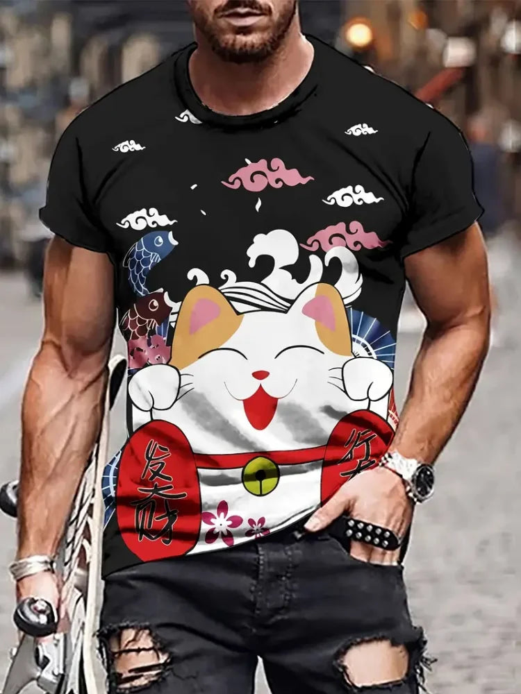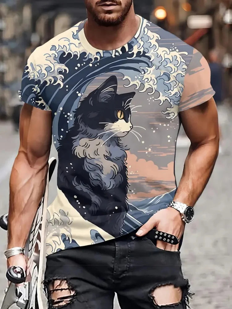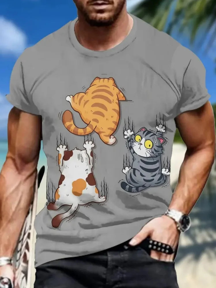 Fashion Sketch Animal Graphic Men T-Shirts Cats 3D Print Oversize Short Sleeve T-Shirt O-Neck Casual Men Women T-Shirt Clothing